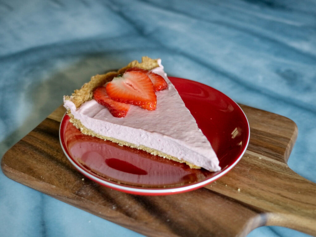 While the crust chills, combine the diced strawberries, granulated sugar, water, and lemon juice in a small saucepan.